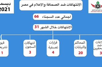 قال المرصد العربي لحرية الإعلام إن "سلطات الانقلاب في مصر اختتمت عام ٢٠٢١ بانتهاكات عديدة ضد حرية الإعلام خلال ديسمبرالمنقضي، وكان أبرزها الحكم بحبس المدون علاء عبدالفتاح ٥ سنوات والمدون ...