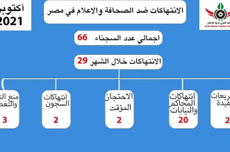 وثق "المرصد العربي لحرية الإعلام" 29 انتهاكا متنوعا وقعت ضد الصحفيين والإعلاميين خلال الشهر الماضي، وذلك عبر تقريره عن الانتهاكات ضد الصحافة وحرية الإعلام خلال شهر أكتوبر المنقضي 2021، مع ...