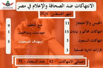 التعليقات على استمرار حبس 74 من الصحفيين والإعلاميين و42 انتهاكا ضدهم فى أغسطس 2020 مغلقة