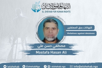 وثق مركز الشهاب لحقوق الإنسان اليوم السبت إضراب معلم من ذوي الاحتياجات الخاصة عن الطعام لليوم الرابع بعد القبض عليه تعسفيا في الشرقية. وذكر المركز أن المعتقل مصطفى ...