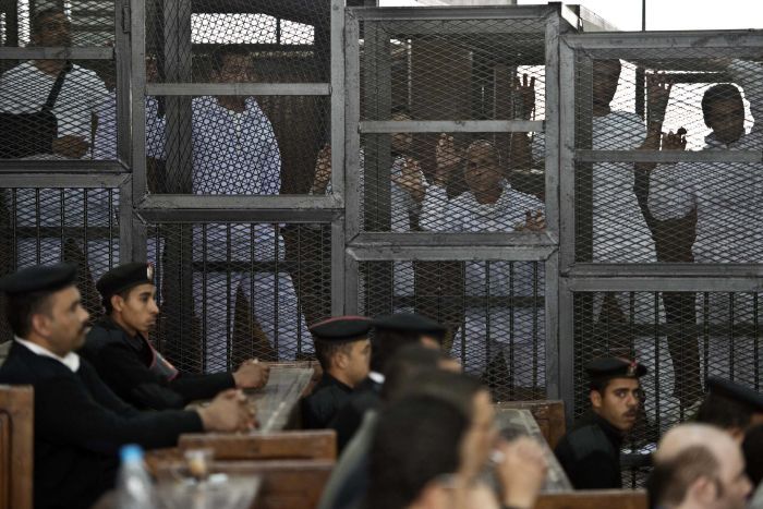 قضت محكمة جنايات الجيزة، المنعقدة بمجمع محاكم طرة، اليوم الأحد، برئاسة الانقلابي سامح سليمان، بالسجن المؤبد لمعتقل واحد والمشدد 15 سنة لـ52 آخرين والسجن 3 سنوات لمعتقل واحد ...