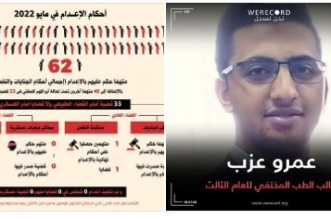 أحكام بإعدام 62 مواطنا في مايو المنقضي واستمرار إخفاء ” عمرو ” لأكثر من 3 سنوات وظهور 15 من المختفين