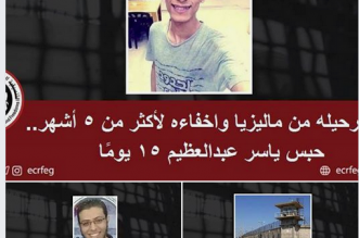 قررت نيابة أمن الانقلاب حبس المعتقل ياسر محمد عبدالعظيم 15 يومًا على ذمة التحقيقات، فيما لفقت له اتهامات ومزاعم بعد ترحيله من ماليزيا وإخفائه أكثر من 5 أشهر. وذكرت ...