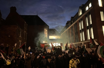 تظاهر أكثر من مائة طالب وطالبة بجامعة كامبريدج، حاملين أعلام فلسطين ومرددين هتافات فلسطين حرة، احتجاجا على ندوة للسفير الإسرائيلي في بريطانيا، تسيبي هوتفلي، بحسب موقع ميدل إيست آي. ...