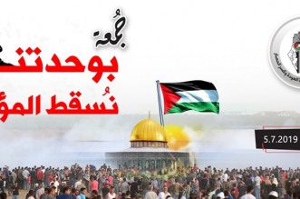 تستعد جماهير الشعب الفلسطيني، اليوم، للمشاركة فى فعاليات الجمعة الـ64 لمسيرات العودة، والتي تأتي هذا الأسبوع تحت عنوان "بوحدتنا نُسقط المؤامرة"، وفقا لما أعلنته الهيئة الوطنية العليا لمسيرات ...
