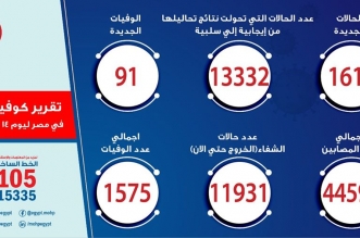 1618 إصابة و91 وفاة جديدة.. إصابات كورونا في مصر ترتفع إلى 44 ألفا و598
