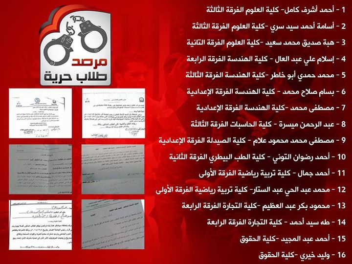 كشف المرصد الطلابي، بمؤسسة حرية الفكر والتعبير، عن تصاعد الانتهاكات الأمنية التي يتعرض لها طلاب الجامعات خلال الأسبوع الماضي 27 ديسمبر 2014 إلى 1 يناير 2015، مقارنة بالأسبوع ...