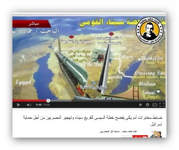 بثت قناة "كلنا خالد سعيد" عبر اليوتيوب تحقيق متلفز تفضح فيه مخطط الانقلاب العسكري لتفريغ سيناء لصالح الكيان الصهيوني وحمايته. ويوثق التحقيق شهادات لقيادات عسكرية توكد ذلك، وأيضًا ...