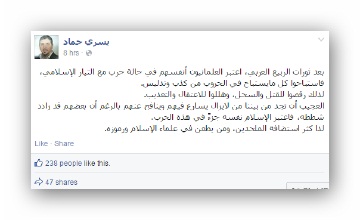 أكد الدكتور يسري حماد -نائب رئيس حزب الوطن- أن العلمانيين دخلوا في صراع مع التيار الإسلامي، منذ بداية ثورات الربيع العربي، معتبرين أنفسهم في حالة حرب مع الإسلاميين. ...