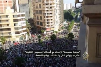 خرج عشرات الآلاف من ميدان النهضة متجهين صوب ميدان الجيزة ومنه إلى نفق الهرم وبجوار مسجد نصر الدين، حيث أرادوا الاعتصام هناك، وذلك على التوازي من أحداث فض رابعة ...