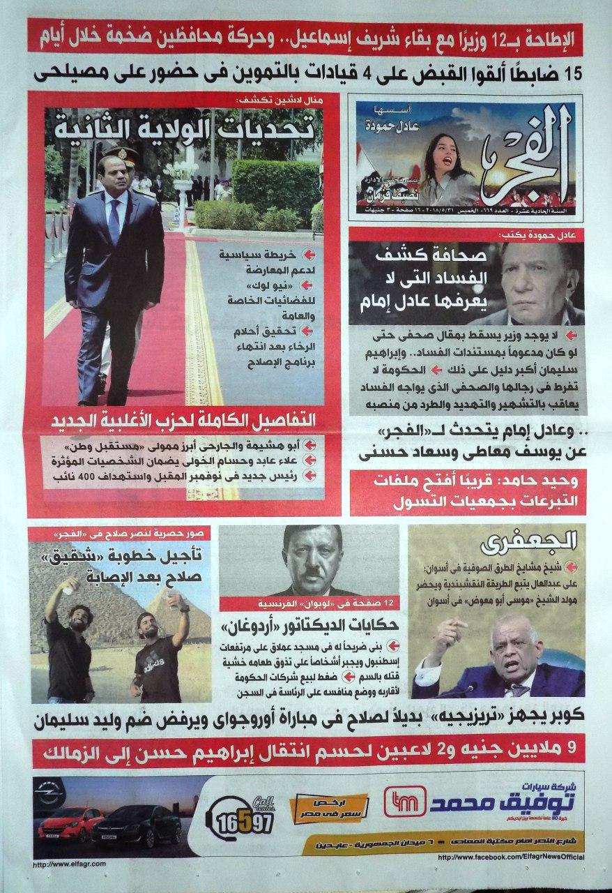 نظمت صحف العسكر الصادرة اليوم حملة “بروباجندا” على خلفية أداء الجنرال عبدالفتاح السيسي اليمين الدستورية أمام برلمان الأجهزة الأمنية لبدء ولايته الثانية التي حازها بعد مسرحية رديئة فضحت ...