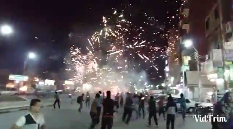 ثوار بني سويف يتصدون لأمن الانقلاب بالشماريخ والألعاب النارية