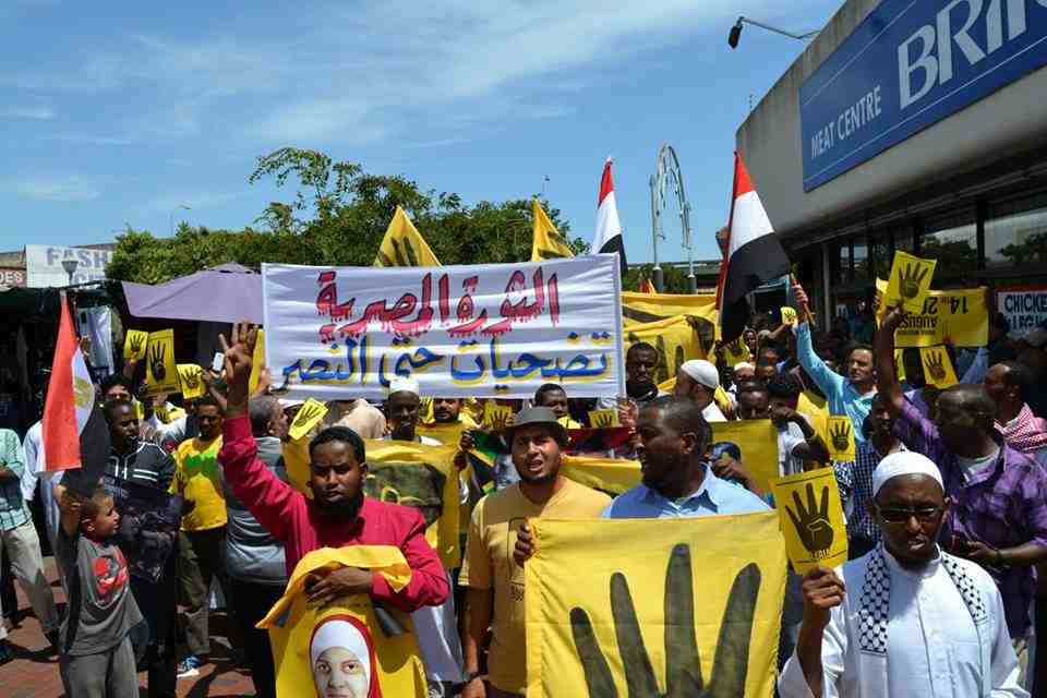 نظم أحرار جنوب إفريقيا مسيرة حاشدة بمدينة كيب تاون تضامنا مع ثوار مصر ورفضًا للانقلاب العسكري، قبيل حلول الذكرى الخامسة لثورة 25 يناير. ورفع المشاركون صور الرئيس ...