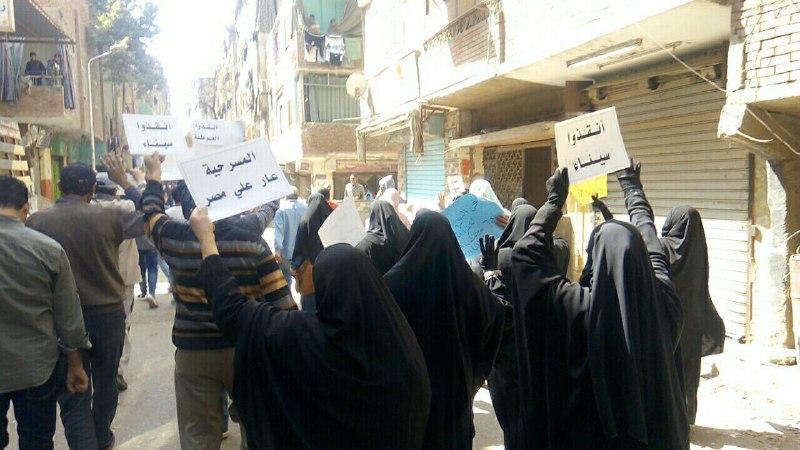 بهتافات “ارحل يا فاشل”، و”سيسي يا خاربها” و”ارحل يالا وسيبها”، و”يا إعلام يا كداب.. أهل سينا مش إرهاب”، و”يادى الخزى ويادى العار.. جندى بيقتل أخوه بالنار”.. وغيرها خرجت ...
