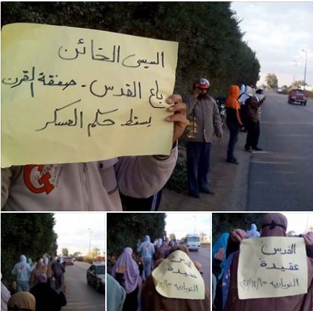 كتب أحمد علي: دشن أحرار وحرائر النوبارية فى البحيرة مظاهرات أسبوع "الوفاء للقدس" التى دعا لها التحالف الوطنى لدعم الشرعية ورفض الانقلاب، واستمرارا للنضال والحراك الثورى الرافض لجرائم ...