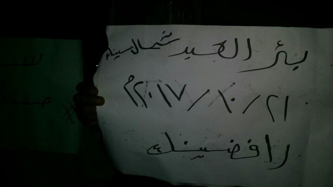 نظم ثوار بئر العبد وقفة احتجاجية مساء الأحد ضمن فعاليات أسبوع "رافضينك" الذي دعا إليه التحالف الوطني لدعم الشرعيه تنديدا بحكم العسكر وجرائمه بحق أهالي سيناء وبتردي الأوضاع ...