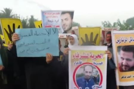 كتب- أحمد علي:   بلافتات تحمل عبارات منها "قل لي يا قاضي إزاي بتنام وأنت بتدي بريء إعدام، قالوا علينا شعب جبان الرجالة في الميدان، السيسي كداب، غلي ...