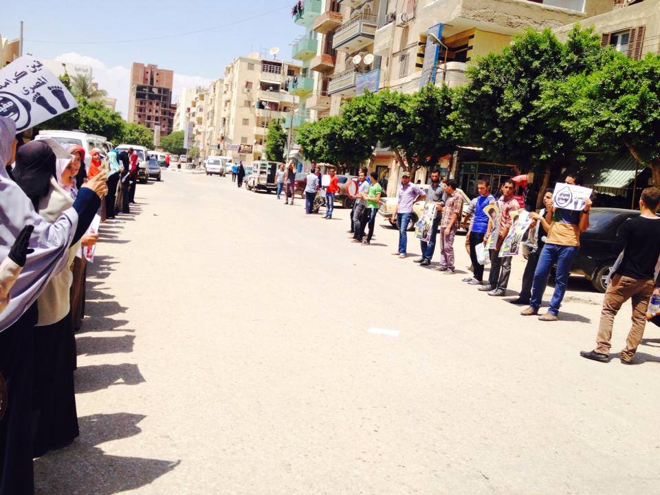 نظم طلاب جامعة الفيوم اليوم رغم الامتحانات ،سلاسل بشرية امتدت من أمام بوابة كلية الزراعة ولمئات الأمتار بحى الجامعة دعما لصمود الرئيس محمد مرسي ومعتقلى الشرعية من طلاب الجامعة وللمطالبة بالإفراج عن كافة المعتقلين ومحاكمة قادة الانقلاب العسكرى.