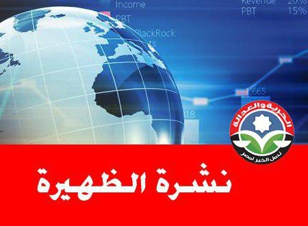 بوابة “الحرية والعدالة” تقدم لقرائها الكرام نشرة الظهرة حول ما تم نشره من أحداث وقضايا على الساحة خلال الفترة الصباحية.