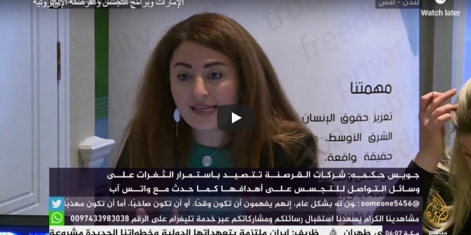 وأوضحت أن أجهزة التجسس “كانت محصورة في يد الاستخبارات الدولية لكن بدأت الحكومات في شرائها واستعمالها للتجسس” واستشهدت بنظام مجموعة “أن أس أو” وهي مجموعة إسرائيلية قامت بتطوير تكنولوجيا متطورة للتجسس استعملت ضد نشطاء حقوقيين وصحفيين في قرابة ٤٨ بلدا، وأكبر سوق لها كانت بالشرق الأوسط، الأمر الذي يبعث على القلق.