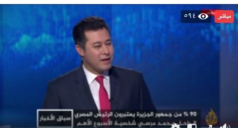 تصدر الرئيس محمد مرسي نتائج استطلاع الرأي في برنامج "سباق الأخبار" المذاع على قناة "الجزيرة" الفضائية، مساء اليوم، وحصل على نسبة 90% من الأصوات، فيما حصل المنافسون الثلاثة في السباق 10%.