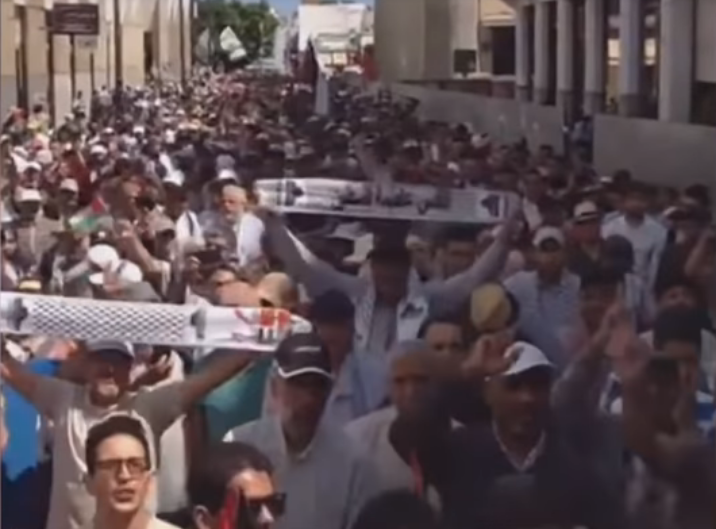 نظَّم آلاف المغاربة تظاهرة حاشدة في العاصمة الرباط، اليوم الأحد، هاجموا خلالها قائد الانقلاب العسكري عبد الفتاح السيسي، ونددوا بصفقة القرن بمشاركة عدة هيئات سياسية إسلامية ويسارية من مواقع مختلفة.