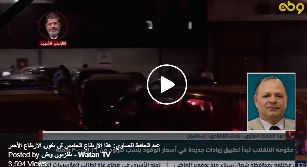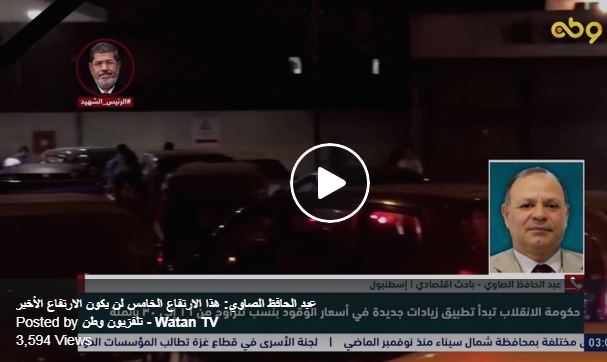 وكانت حكومة الانقلاب قد أصدرت قرارا بزيادة أسعار الوقود؛ حيث ارتفع سعر أسطوانة البوتاجاز إلى 65 جنيهًا، فيما ارتفع سعر بنزين 80 إلى 6.75 جنيه، وارتفع سعر بنزين 92 إلى 8 جنيهات، وارتفع سعر بنزين 95 إلى 9 جنيهات، وارتفع السولار إلى 6.75 جنيه.