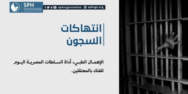 أكدت منظمة السلام الدولية لحماية حقوق الإنسان استمرار نهج النظام الانقلابي في مصر في ارتكاب الانتهاكاتها الشديدة بحق المعتقلين، ولا يزال الإهمال الطبي الأداة الأولى والأكثر استخدامًا للتنكيل بهم وقتلهم بالبطيء.