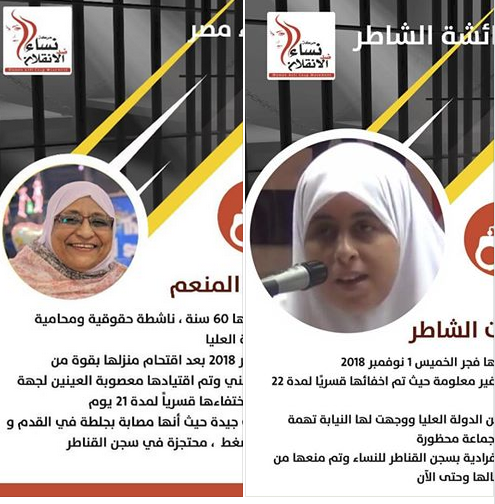 واعتقلت ميليشيات الانقلاب المحامية بالنقض هدى عبدالمنعم وعائشة الشاطر، ابنة المهندس خيرت الشاطر، نائب المرشد العام للإخوان المسلمين، منذ مطلع نوفمبر الماضي 2018، ضمن هجمة شنتها على بيوت المدافعين عن حقوق الإنسان، والتي أسفرت عن اعتقال العشرات بينهم 8 سيدات وفتيات على الأقل، وتعرضوا لفترة من الإخفاء القسري، تلك الجريمة التي تنتهجها سلطات النظام الانقلابي في مصر دون توقف منذ الانقلاب العسكري؛ حيث تلفق للضحايا اتهامات ومزاعم لا صلة لهم بها ويتم تعريضهم لعمليات تعذيب ممنهج للانتزاع اعترافات حولها.
