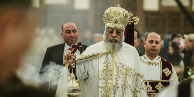 وفي وصف آخر قال تواضروس عن السفيه السيسي “دائما اللي بيشتغل مبيتكلمش والرئيس بيشتغل.. والإنجازات عظيمة للغاية في السنوات الأخيرة، وأن المنظومة كلها أكثر من رائعة وأن السيسي مثل “المايسترو”، الذي يقود فرقة كبيرة تقوم بعمل ضخم يؤدي إلى نتائج ملموسة”، فهل علم تواضروس بفساد السفيه السيسي، إن كان لا يعلم فتلك مصيبة وإن كان يعلم فالمصيبة أعظم وتقتضي عزله من منصبه.