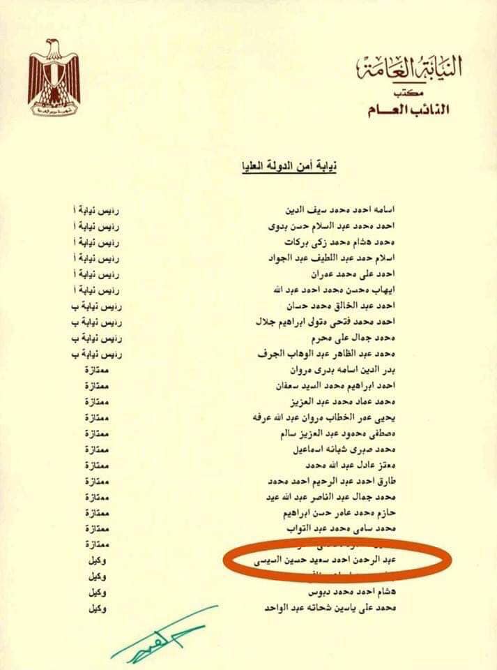 ولم تقتصر الحركة على نجل شقيق المنقلب، بل شملت أيضًا اختيار نائب عام الانقلاب نجله أحمد، الملتحق بالنيابة حديثًا، لعضوية المكتب الفني للنيابة العامة، بالإضافة إلى اختيار نجل نائب عام الانقلاب الراحل هشام بركات للعمل بالمكتب الفني؛ وذلك من حركة شملت أعضاء مكتبه الفني، ومكاتب التحفظ على الأموال، والتعاون الدولي، وحقوق الإنسان، ومركز المعلومات، ونيابة أمن الدولة العليا، ونيابة الأموال العامة العليا، ونيابة الشئون المالية والتجارية، ونيابة مكافحة التهرب من الضرائب، والنيابة العليا لشئون الأسرة، ونيابة استئناف القاهرة، وأعضاء النيابات الكلية والجزئية بالقاهرة والمحافظات.