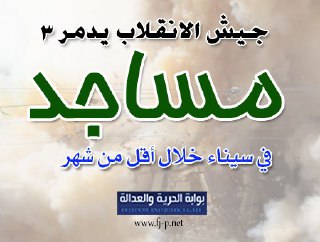 إنفوجراف| جيش الانقلاب يدمر 3 مساجد في سيناء خلال أقل من شهر - 10 أكتوبر، 2019 - فيأخبار دمر الانقلاب العسكري عددا من المساجد لأسباب واهية، منها في الوجه البحري بدعوى إنشاء كباري وطرق، وفي سيناء تم هدم العديد من المساجد لأسباب أمنية. في الإنفوجراف التالي نستعرض ما حدث مؤخرا من هدم 3 مساجد في سيناء.