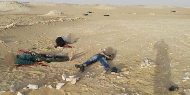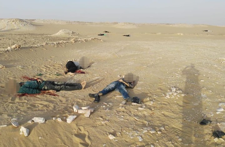 وزعموا أنه “جرى على الفور التعامل مع تلك المعلومات، واستهداف الوكر المشار إليه، حيث جرى تبادل إطلاق النيران مع العناصر الإرهابية، ما أسفر عن مصرع 13 منهم، وعثر بحوزتهم على 6 بنادق آلية، و4 بنادق خرطوش، وعبوة متفجرة، وحزامين ناسفين”، قائلين إن “نيابة أمن الدولة العليا تتولى التحقيق”.