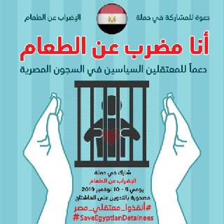 أطلق عدد من النشطاء والحقوقيين المصريين حملة بعنوان “أنا مضرب عن الطعام”؛ تضامنًا مع المعتقلين فى سجون العسكر، بالتزامن مع قرب المراجعة الدورية الشاملة لملف مصر فى الأمم المتحدة، والمقررة يوم الأربعاء القادم 13 نوفمبر الجاري.