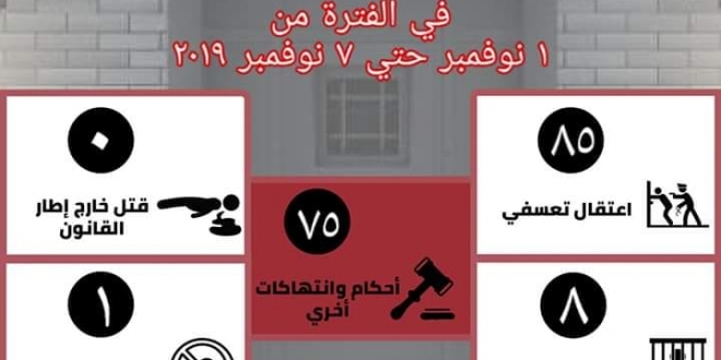 كانت المنظمة قد وثقت الأسبوع قبل الماضي، ٢٢٢ حالة انتهاك منذ يوم ٢٥ أكتوبر حتى يوم ٣١ أكتوبر ٢٠١٩.