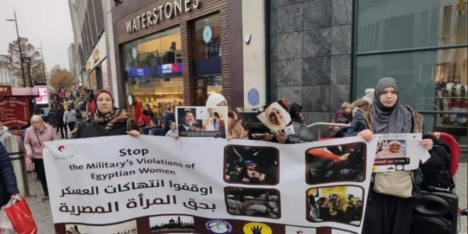 نظَّمت ناشطات حقوقيات وقفة تضامنية في مدينة برمنجهام البريطانية؛ للمطالبة بوقف الانتهاكات بحق المرأة المصرية على أيدي النظام الانقلابي الغاشم.
