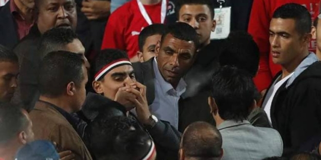 وكان الشاب عز منير خضر رفع علم فلسطين في ستاد القاهرة، خلال مباراة المنتخب المصري وجنوب أفريقيا الأسبوع الماضي؛ ما أثار جدلًا كبيرًا بعد تداول مقاطع فيديو وصور لاعتقاله من مدرجات الملعب، وأصبح مستساغًا طرح هذا السؤال "واحد قال أمن وسلامة المواطن الإسرائيلي جنبا إلى جنب مع أمن وسلامة المواطن الإسرائيلي هيسمح بحد يرفع على فلسطين في المدرجات؟".
