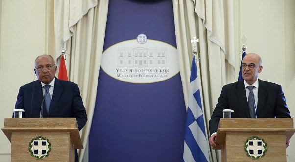 والتقى، الأحد، وزير الخارجية اليوناني نيكوس ديندياس، وزير خارجية الانقلاب سامح شكري في القاهرة، لبحث ما أعلنه رئيس الوزراء اليوناني كيرياكوس ميتسوتاكيس، بأن أثينا ستطلب الدعم من حلف شمال الأطلسي، خلال قمته المقررة هذا الأسبوع في لندن، بعد توقيع أنقرة اتفاقًا عسكريًّا مع حكومة الوفاق الليبية.