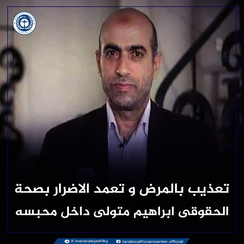 وأدان المركز مستنكرًا ما يتعرض له الحقوقي إبراهيم متولي داخل محبسه بسجن العقرب من ممارسات قمعية وتعمد الإضرار بصحته، كما أدان رفض إدارة السجن علاجه، وتردي الرعاية الصحية المقدمة له داخل السجن بما يبدو أنه أسلوب ممنهج للتخلص من المعارضة المصرية داخل السجون بالقتل البطيء.