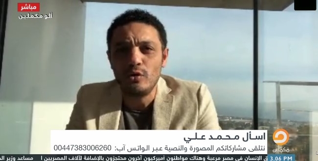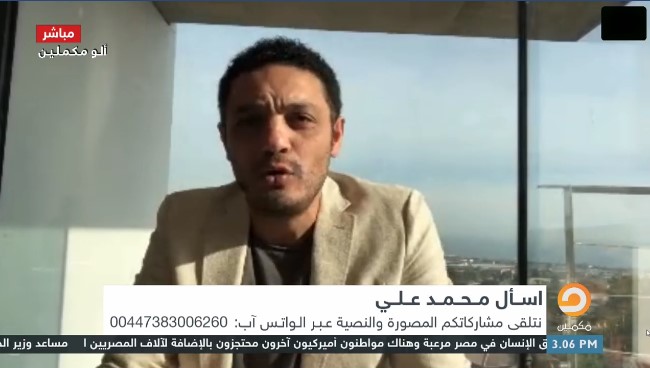 وحول رأيه في ظهور وائل غنيم مؤخرًا ومهاجمته لدعوته للتظاهر، أوضح علي أن كل إنسان له الحرية الكاملة في العبير عن رأيه ورأيه يحترم.