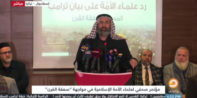 أدان الاتحاد العالمي لعلماء المسلمين الإعلان عن صفقة القرن المزعومة، مطالبا الدول العربية والإسلامية بالوقوف ضد قراراتها.