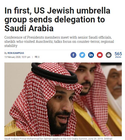 من غير مصدر واحد، فضح الإعلام العبري الزيارة الأولى من نوعها لمجموعة "المظلة اليهودية"، بإرسالها وفدا ضم 55 رئيسًا وعضوًا بالمنظمة للمملكة العربية السعودية، قابل مسئولين سعوديين، ولم تفصح مؤسسة "التلغراف للبناء اليهودية" سوى عن لقاء جرى مع "الشيخ" محمد العيسى، الأمين العام لرابطة العالم الإسلامي، والذي زار مكان محرقة اليهود ببولندا قبل أقل من شهر، وينظر إليه على أنه مقرب من محمد بن سلمان ولي العهد.