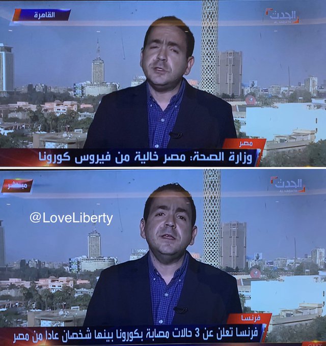 عنوانان ظهرا قبل قليل على شاشة #العربية #الحدث ليس بينهما سوى ثوانٍ معدودات!#كورونا #مصر #قاوم_الدعاية #أبق_الوعي_حيا pic.twitter.com/QAYqye5l9r