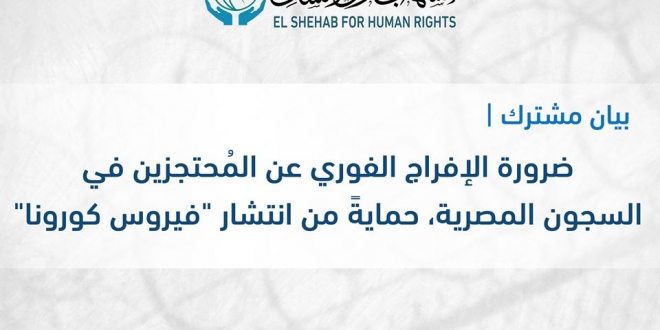 طالبت 4 منظمات حقوقية بالإفراج الفوري عن المسجونين والمُحتجزين، تجنبًا لإصابة المُحتجزين بفيروس "كورونا"، بما قد يُهدد المجتمع المصري في حالة انتشاره خارج السجون ومقار وأماكن الاحتجاز مع اتخاذ التدابير القانونية المنصوص عليها في قانون الإجراءات الجنائية.