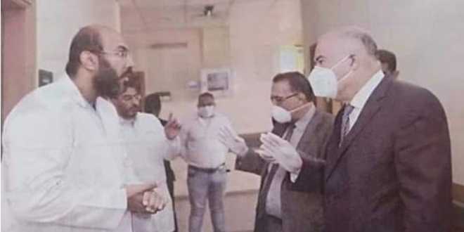 ونقل آخرون مشهدًا لمسئولي الانقلاب يزورون مستشفى وهم ملتزمون بارتداء “جوانتي” و”كمامة” وكل وسائل الحماية، بينما الأطباء والممرضون الذين هم أول خط دفاع أمام فيروس كورونا وأكثر الأشخاص للخطر يفتقدون إلى أدنى وسائل الحماية.