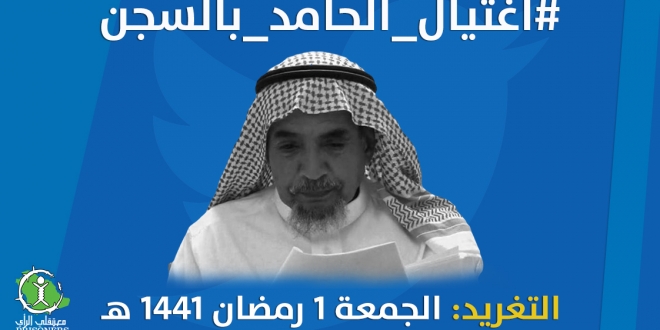 أطلق حساب “معتقلي الرأي” دعوة لجميع الأحرار للتغريد على مدار اليوم الجمعة 1 رمضان 1441 (24 أبريل 2020) بوسم #اغتيال_الحامد_بالسجن؛ وذلك لتسليط الضوء على جريمة الإهمال الطبي المتعمد التي أودت بحياة الحقوقي السعودي عبد الله الحامد “أبي بلال” في السجن، وللمطالبة بمحاسبة المسئولين عن وفاته.