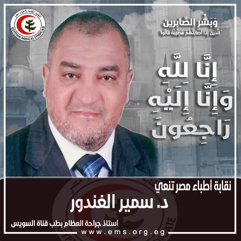 من جانبها، نعت النقابة العامة للأطباء الدكتور سمير الغندور أستاذ جراحة العظام بطب قناة السويس، سائلين المولى أن يتقبله مع الشهداء ويسكنه فسيح جناته ويلهم أسرته الصبر والسلوان.