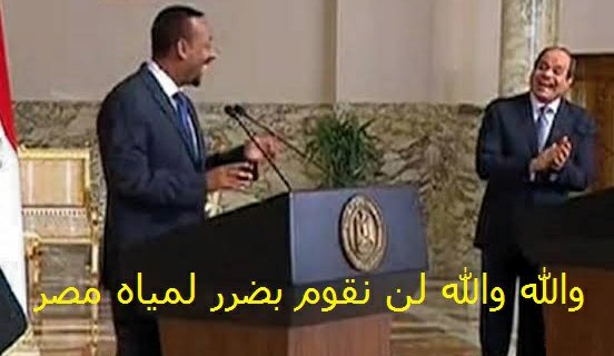 من أعظم المشاهد كاريكاتورية، كان مشهد السيسي الهُمام وهو يُملي القسَم على "آبي أحمد" بألا يضر مصر. لو كان "مرسي" من فعلها، لهاج وماج عليه السيساوية إلى أن مات.