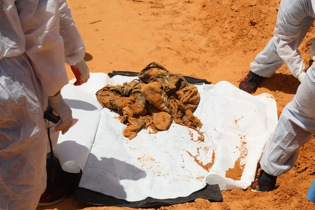 وأعلنت السلطات الليبية أن عدد المقابر التي خلفتها مليشيات حفتر واكتشفت في ترهونة وصلت حتى الآن إلى 11 مقبرة، بعض أصحابها دفنوا أحياء بينهم أطفال ونساء.