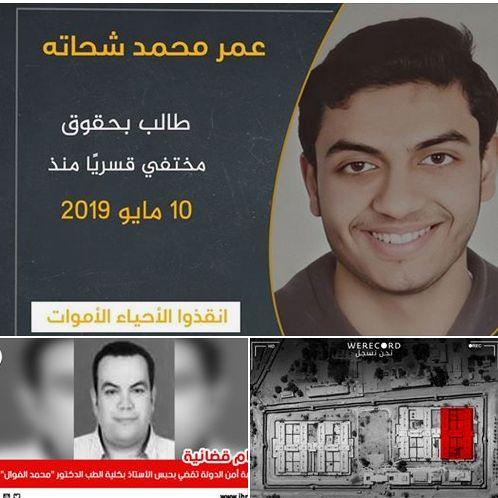 فيما ندد حساب “صوت الزنزانة” على فيس بوك باستمرار جريمة الإخفاء القسري لـ”عمر محمد شحاتة”، الطالب بكلية الحقوق، منذ اعتقاله بتاريخ 10 مايو 2019 أثناء ذهابه لتأدية صلاة التراويح بمنطقه شارع أبو سليمان بالإسكندرية، حيث استوقفه فردان من رجال شرطة السيسي المنقلب بزي مدني وقاموا باعتقاله!.